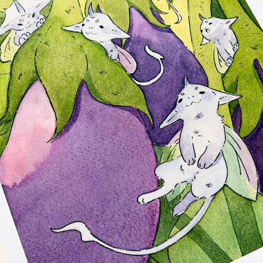 Eggplant Imps Art Print